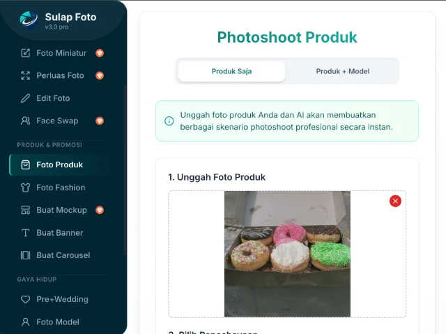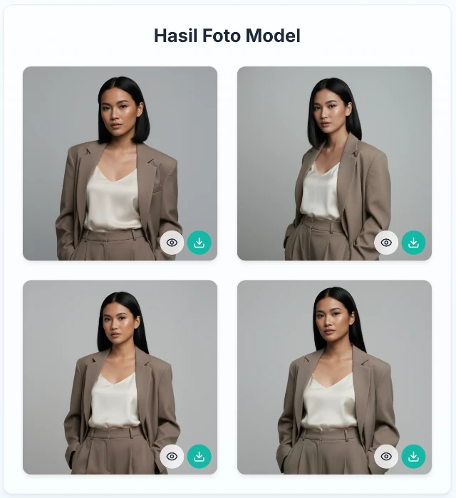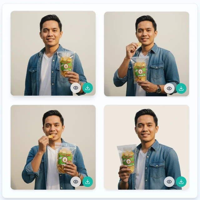 Unggah foto produk Anda dan AI akan membuatkan berbagai skenario photoshoot profesional secara instan.
