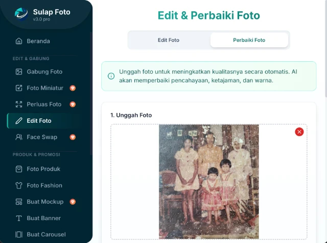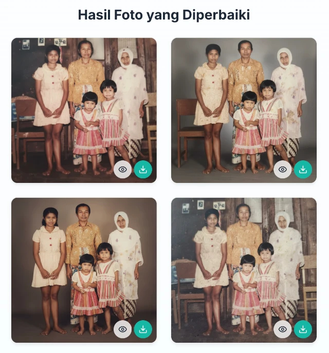 Bisa memperbaiki foto rusak, lawas, jadul menjadi lebih baru, clean, dan modern seperti menggunakan Kamera mahal DSLR