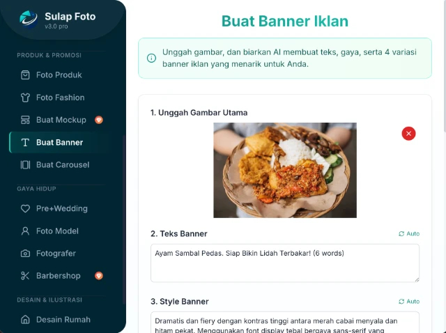Buat banner dari gambar/photo produk menjadi profesional menjual.
